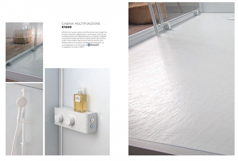 Duschkabine mit Dampfbad K1000 140x90 6 mm gehärtetes Glas mit Kalkschutz Matt White Profile Innenwände im ultraweißen Kristallhintergrund 6 mm gehärtetes Glasdach Big Rain Kopfbrause Leicht zu reinigendes Glasfreigabesystem Erhältlich mit 2,5 cm Duschwanne mit Steineffekt Ablassschraube Thermostatmischer Aromatherapie-Spender Dampfbad 3 kw Automatisches Waschen des Kessels am Ende des Zyklus Bluetooth und Lautsprecher in der Spalte integriert Gestreifte Chromotherapie mit Doppelklingengehäuse Duschverschluss mit mattweißem Finish Alle Zubehörteile sind in mattem Weiß Ein / Aus-Steuerung für Dampfbad und Farbtherapie