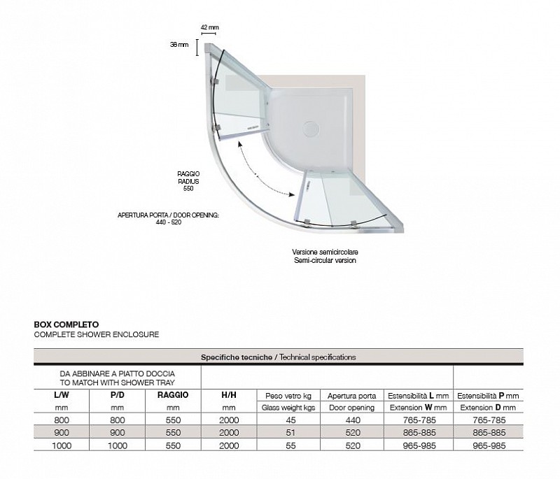 Semicircular Shower Box 90x90