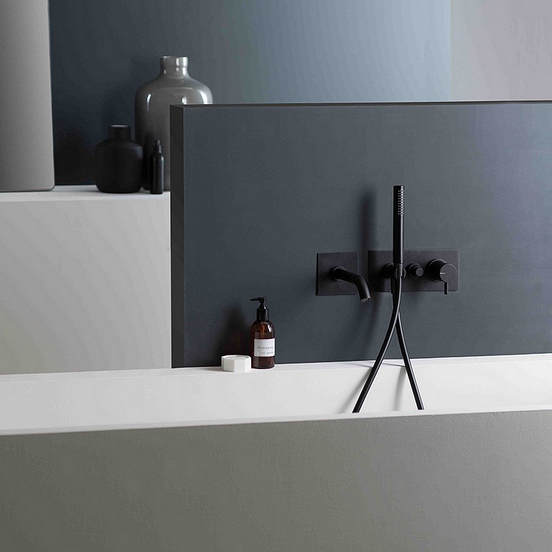 Built-in Mixer for Bathtub Diameter35 Black E0BA0438CC04Single-Lever mixer with 2 Outlets with automatic Diverter with Outlet spout L 20 cm, flexible 1.5 m with external plate, black brass hand shower complete with internal parts