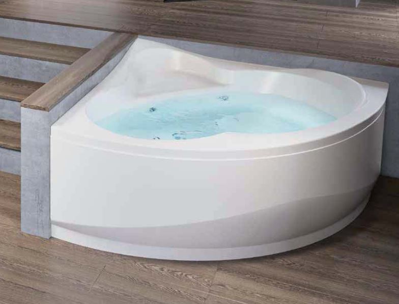 Bathtub 135x135 Novellini Una without hydromassage, with frame and front panel and drain column.