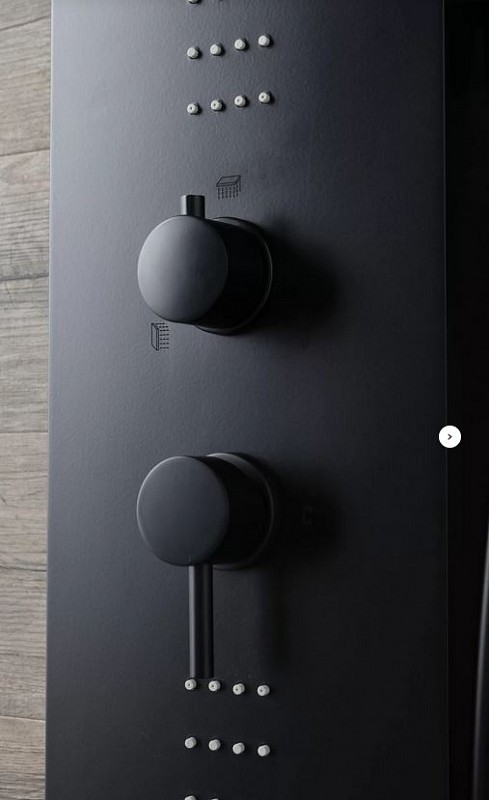 Matt Black stainless steel shower column with taps Mechanical mixer with 3-way diverter with hand shower, 4 vertical microjets and shower head with anti-limescale heads