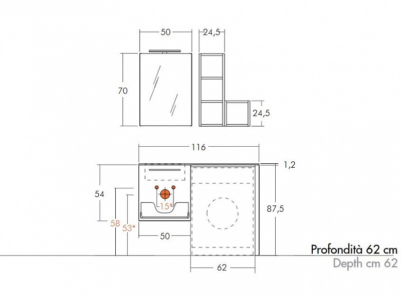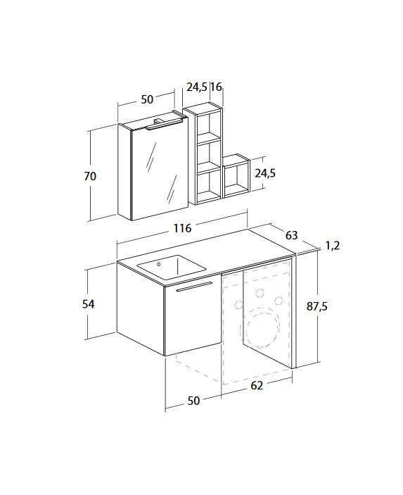 Base for Washbasin 1 Drawer L. 50XH54 P. 62.5