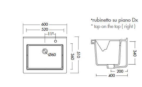 Base for sink 2 Doors L. 57XH87,5 P. 49