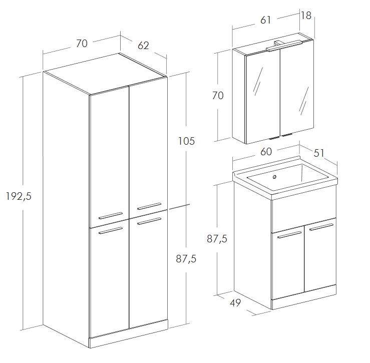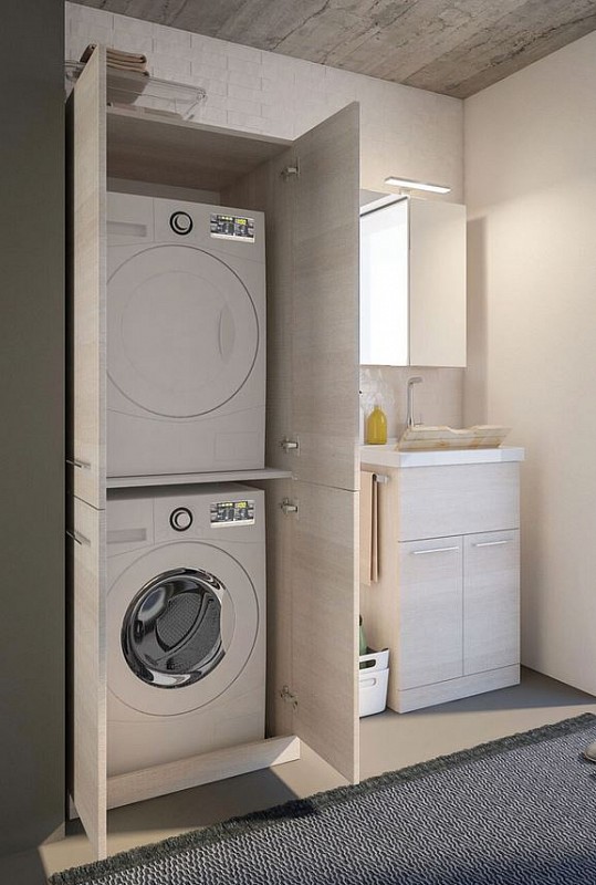Bathroom cabinet with 60 cm sink and column for washing machine and dryerComposed by