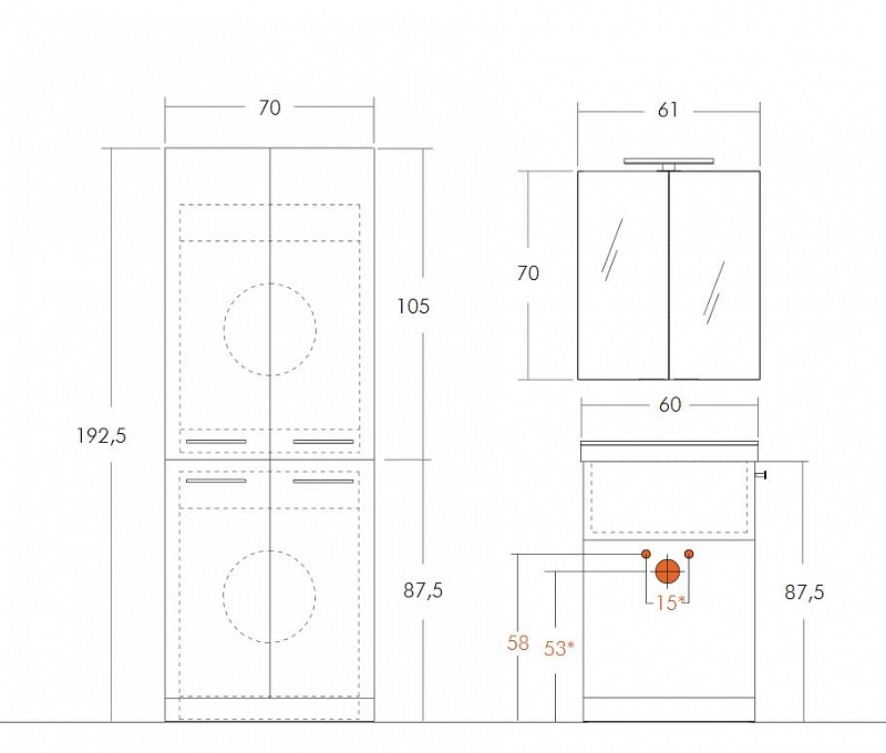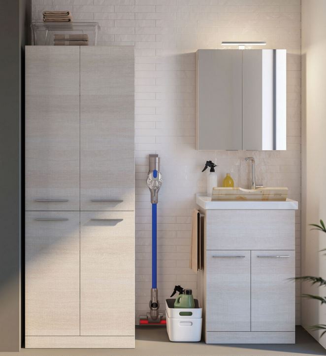 Bathroom cabinet with 60 cm sink and column for washing machine and dryer
