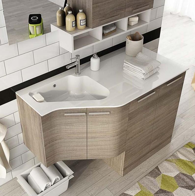 Bathroom cabinet with sink and washing machine holder base cm 136