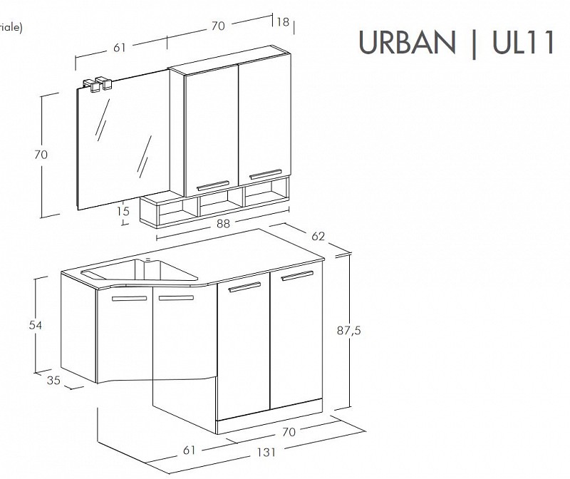 2 Door Washing Machine Base L. 70 P. 62 H. 87 (Useful internal measures L66xH85.7 P. 58)