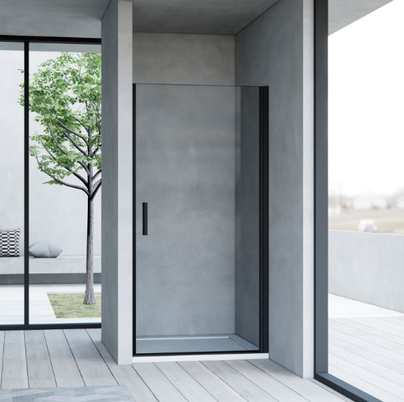 Shower door in Crystal 6mm 80 (78/80.5 in nicchia) Black H 2mt with flap door openingthe door is reversible