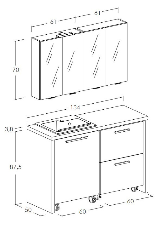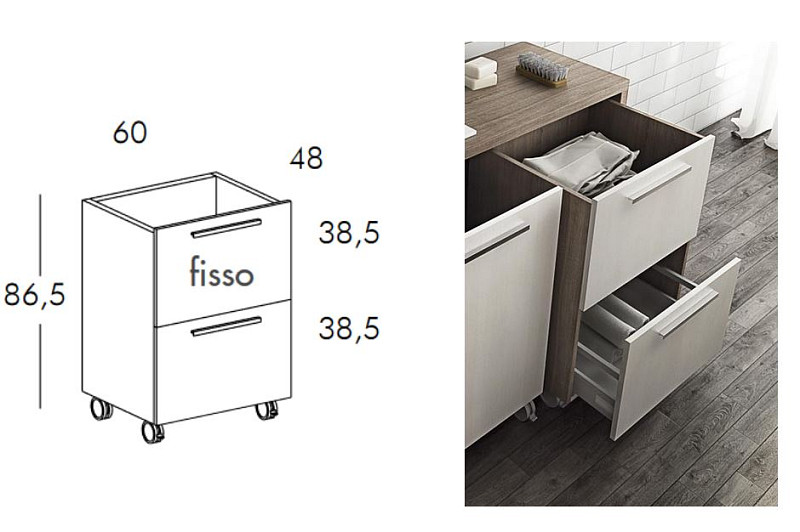 Trolley with Wheels fixed upper part lower 1 drawer L. 60XH86