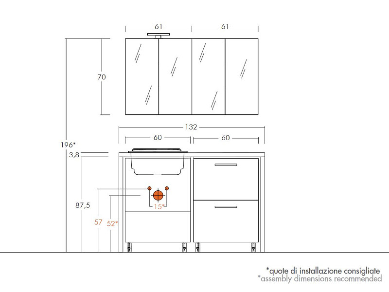 N° 2 Mirrors Container 2 doors L. 61xH.70 P. 18