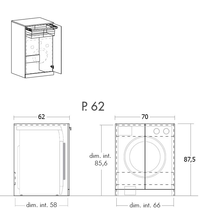 Column for washing machine with removable basket cm 70Depth 62cm