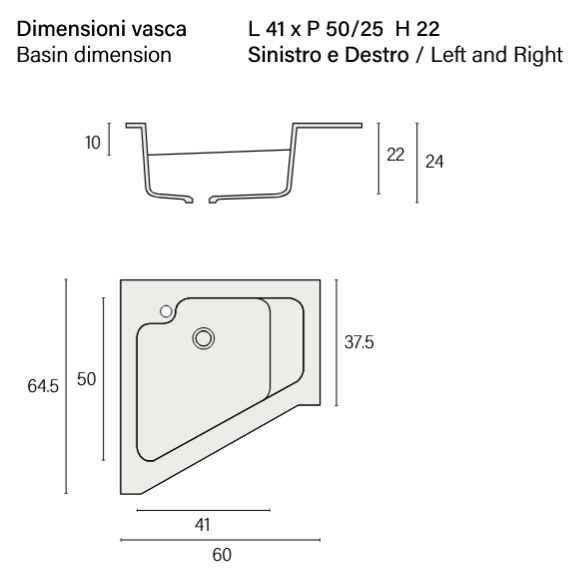 Base unit Wash basin with gearbox Profondita 64/37 1 Door suspended L. cm60
