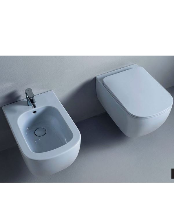 Bidet Play Suspended Azzurro Polvere glossyfixing kit included