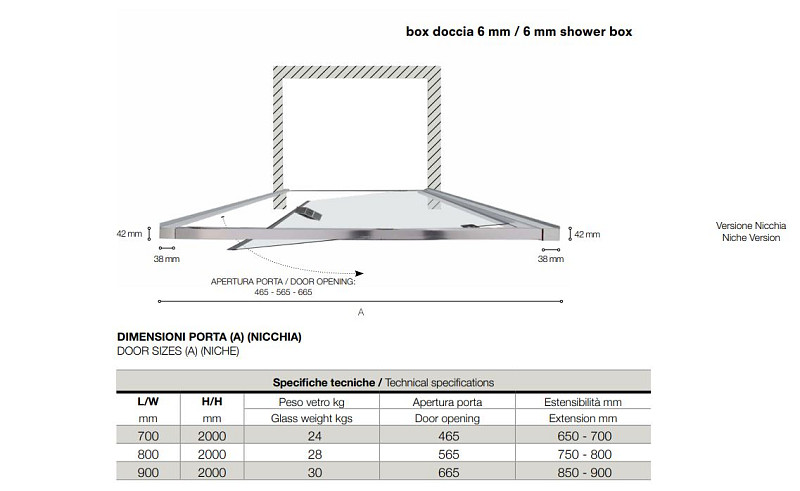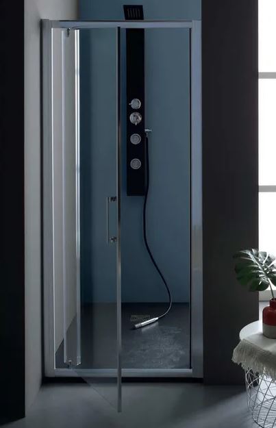 Shower door in Crystal 6mm 75 (73/75.5 in nicchia) Black H 2mt with flap door openingthe door is reversible