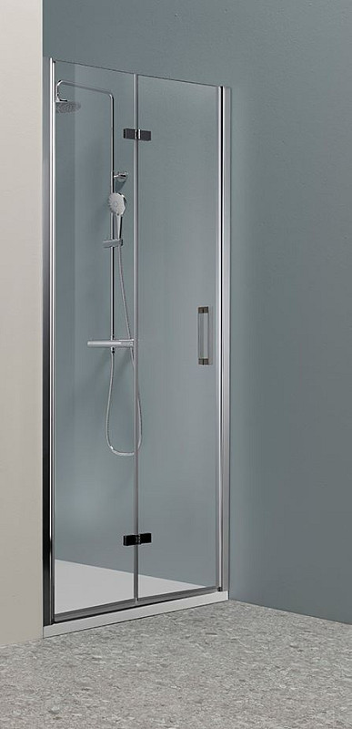 TPS35 Folding Shower Door Cm 93 WITH NTPC01 PROFILEExtendability 91/94,5 X H200 in 6 MM Transparent Tempered Glass with anti-limescale treatment