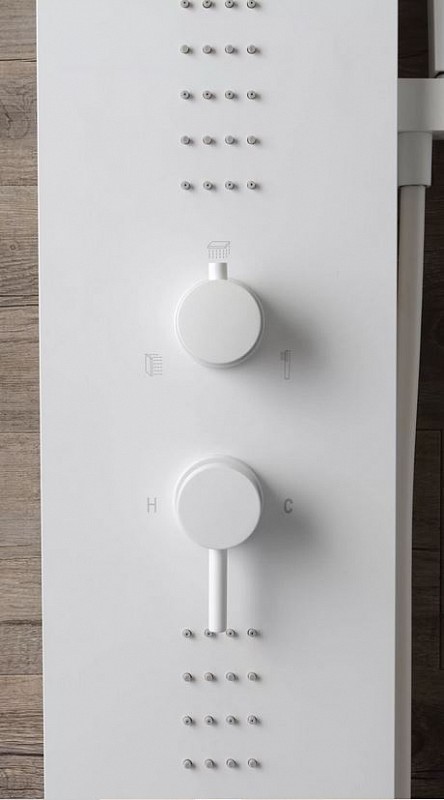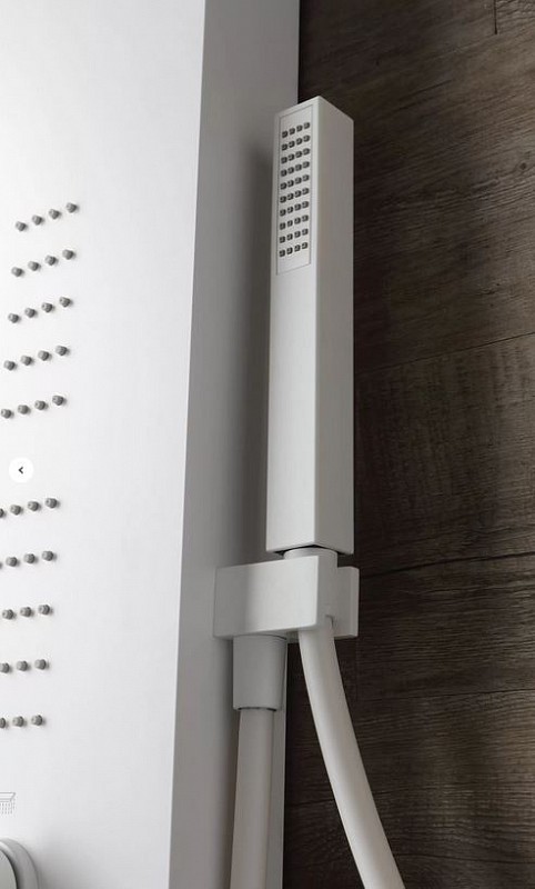 Matt White stainless steel shower column with taps Mechanical mixer with 3-way diverter with hand shower, 4 vertical microjets and shower head with anti-limescale heads