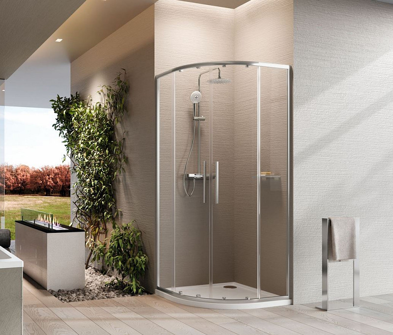 Semi-circular Shower Box Riga R 100x100 97-98,5 X 97-98,5Sliding Opening 6 mm Tempered Glass, H 200 mm