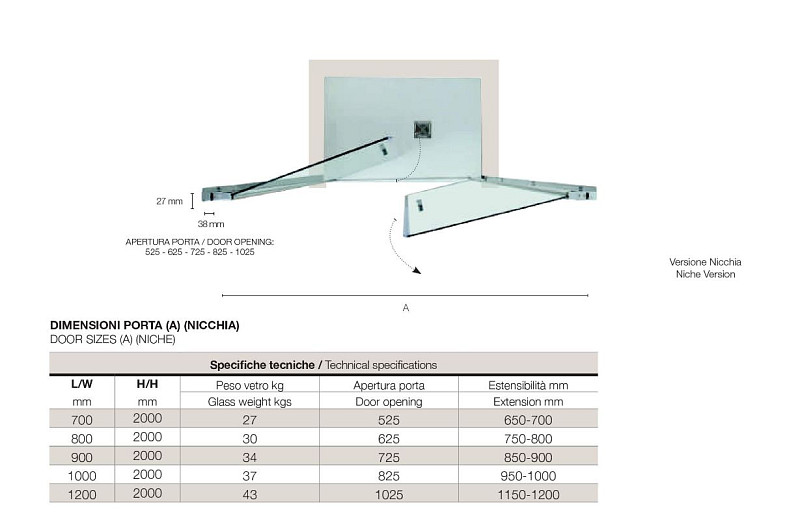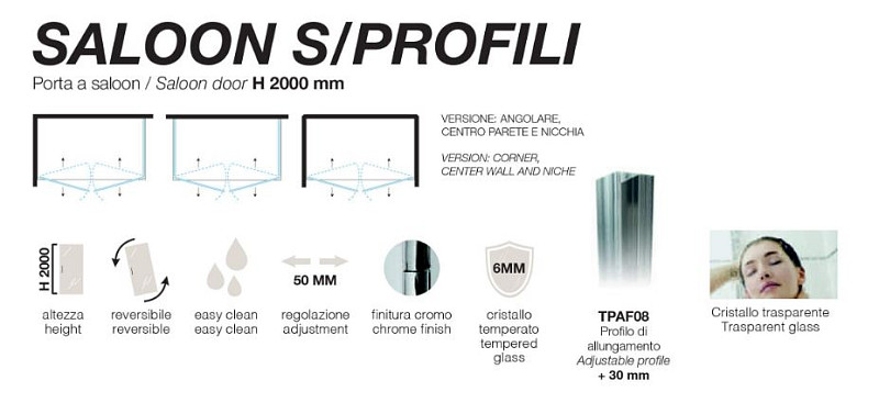 Box Doccia Porta Doccia Saloon cm 120 Estensibilità 115/120 Altezza 2 MetriCristallo 6MM con Trattamento Anticalcare