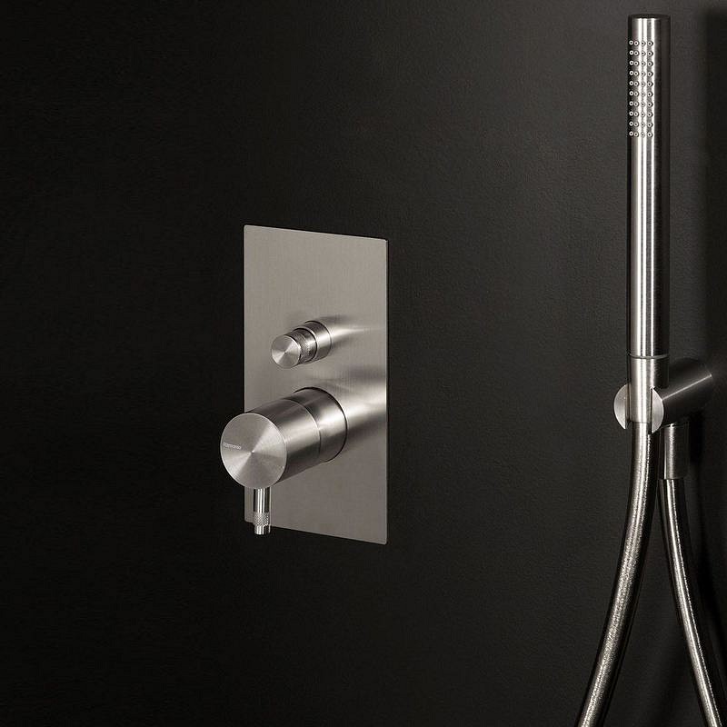 Mezclador de ducha empotrado con desviador Diámetro 35 acero inoxidable E0BA0150INOX2 salidas con desviador automático