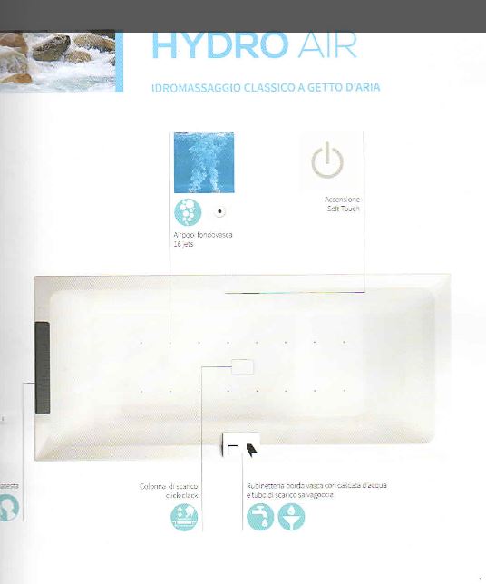 Divina Hydro Air Whirlpool con16 chorros en el fondo del tanqueel masaje Airpool es un masaje de chorro de aire con ajuste de encendido / apagado para una estimulación celular efectiva.
