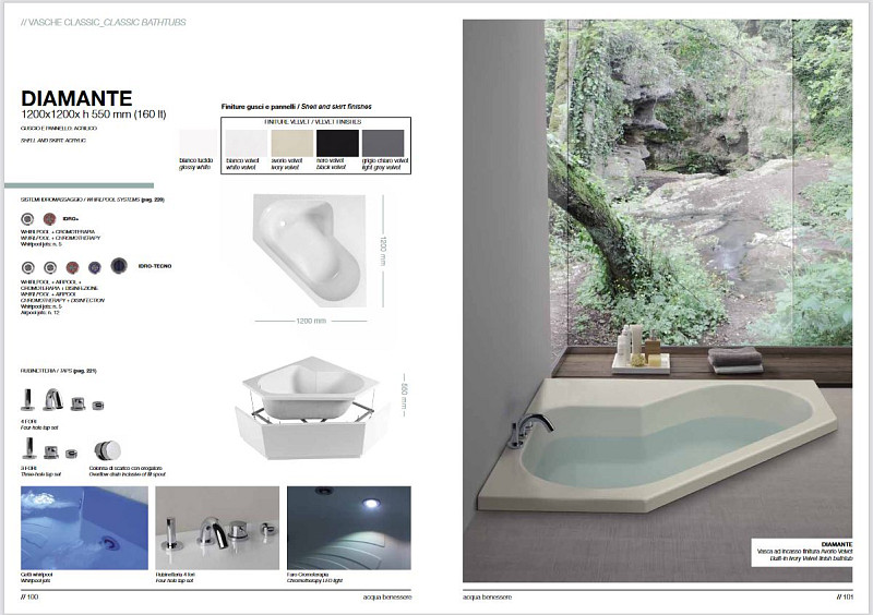 Bañera de hidromasaje Diamante 120x120 con 6 jets Hidromasajeen +CromotherapyOption