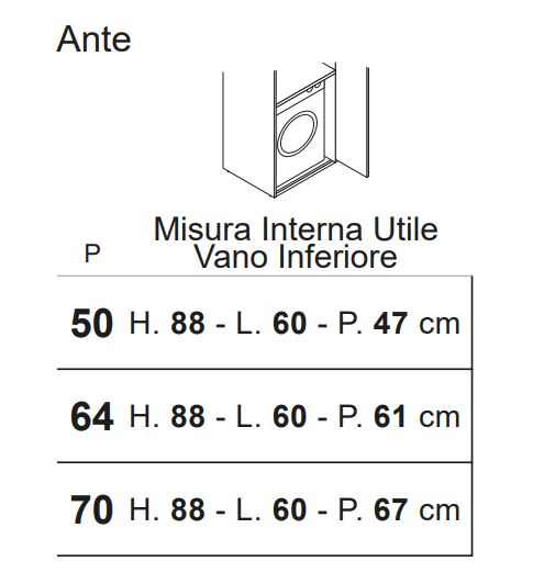 P. 70 DIMENSIONES ÚTILES INTERNAS COMPARTIMENTO INFERIOR H.88 L. 60 P. 67