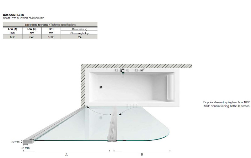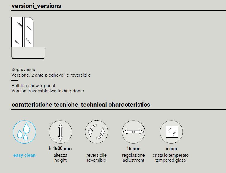 Mampara de Bañera Abatible 114 cmMampara de bañera Crystal de 5MM con tratamiento antical Easy Clean de serie