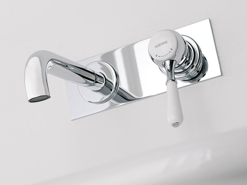 Mélangeur d'évier mural & nbsp; 900 avec levier blanc, finition en chrome poliavec éléments en retrait
