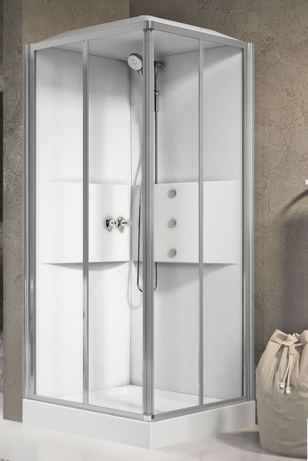 Media A 80 Cabine de douche hydromassante Ouverture coulissante sur le coin Entrée 44 cmavec jets d’hydromassage verticaux