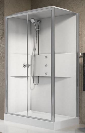 Whirlpool Box Media 2P 120X80 Ouverture coulissante avec ouverture latérale latérale fixe 47 cmavec douche à main avec loquet, tablette pour objets, repose-pieds