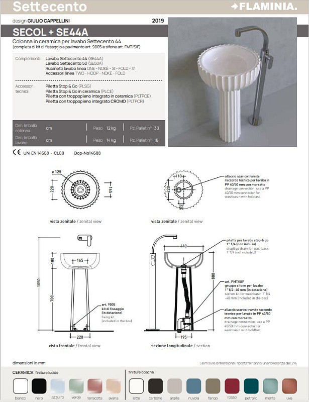 Évier sur pied Settecento 44