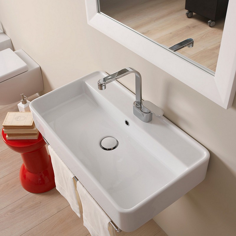 Lavabo Miniwash 75x42xH 13 Sospeso con Piano Rubinetteria MW75Scon troppopieno ,predisposto per 5 fori