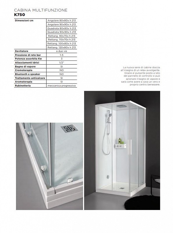 K750 Cabina Doccia con Bagno di Vapore 120X80