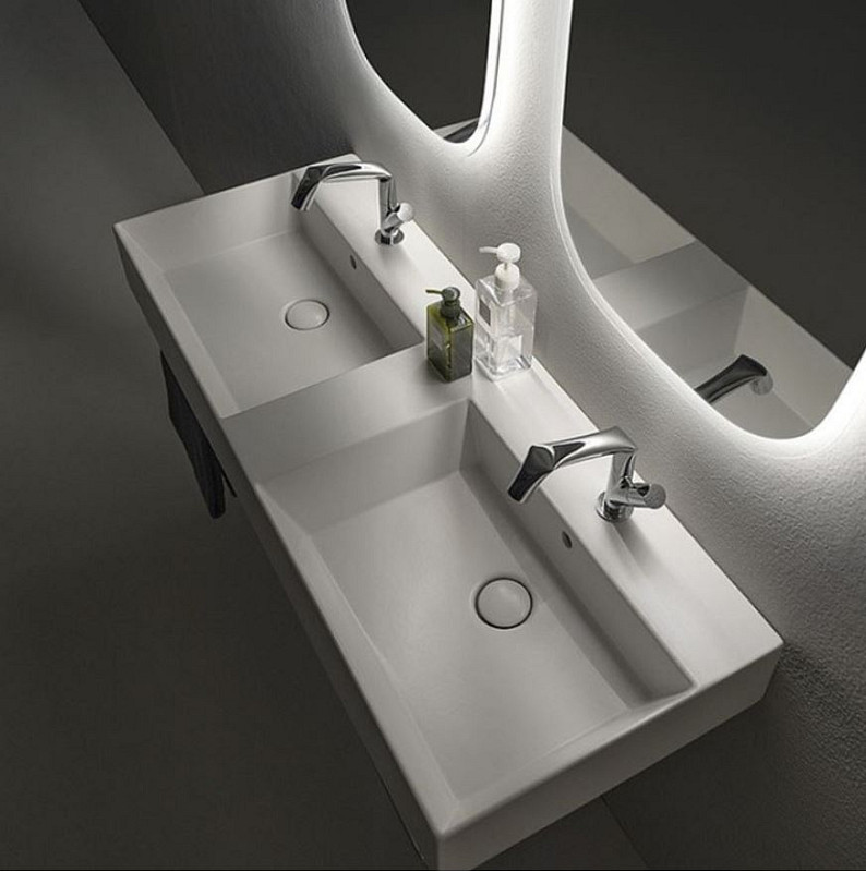Lavabo Doppio Applight 120x47 da Appoggio o Sospeso Bianco Lucido