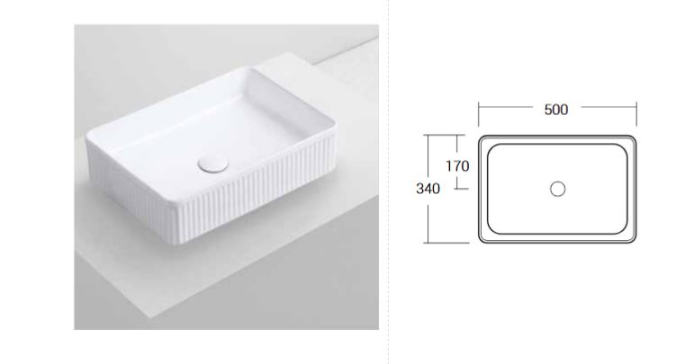 N° 1 Lavabo appoggio in Ceramica scanalata a scelta effetto marmo Pietra Grigia oppure Bianco Lucido Larghezza 50CM Profondità 34CM Altezza 13CM