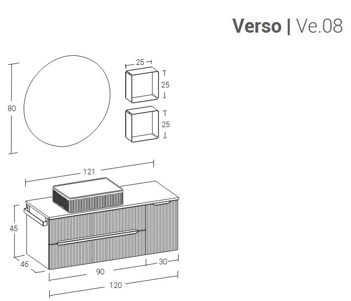 Mobile bagno Verso 120cm con Lavabo AppoggioMobile composto da: